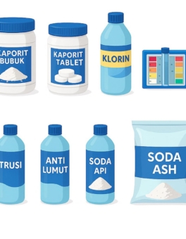 Tersedia : -Kaporit Bubuk -Kaporit Kapsul/Tablet -Klorin -Test Kit -Clarifier -Anti Lumut -Soda -Soda ASH
